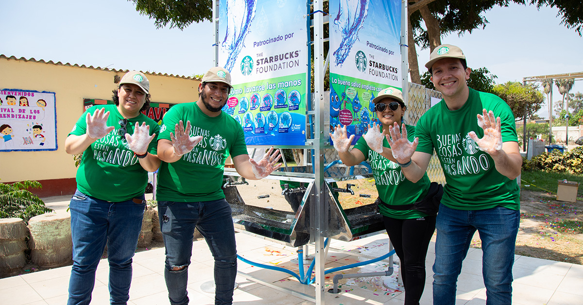La Fundación Starbucks y voluntarios de Starbucks Perú junto a Planet Water Foundation construyen torre de filtración de agua en la Escuela Virgen de Chapi en Lurín. ...